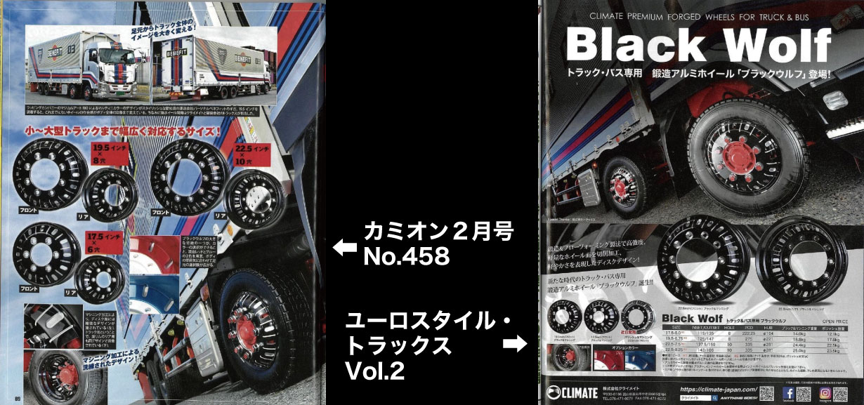 2021年2月1日 カミオン2月号(No.458) ユーロスタイル・トラックスVol.2 の2誌に当社のトラックが掲載されました。
