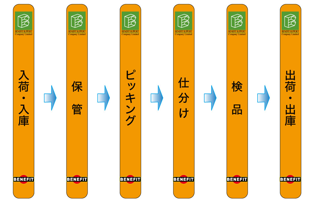 お客様の工場構内又は倉庫内における製品・資材の入出庫、在庫管理及びフォークリフト等での入出荷・流通加工(検品・ラベル発行及び貼り付け)等、物流倉庫業務でのすべての工程を請負っております。 |